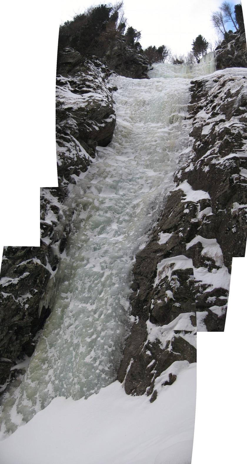 Když jsme nalézali do první délky, přišla zrovna skupina Italů a nějací češi. Italové se dělí na tři skupinky, jedna dvojka leze nalevo od nás docela rychle. Když slaňujeme, jsou už téměř nahoře. Ale třetí, trojčlenná skupina je teprve asi v jedné třetině ledu a to už jsou asi 3h odpoledne. :o)