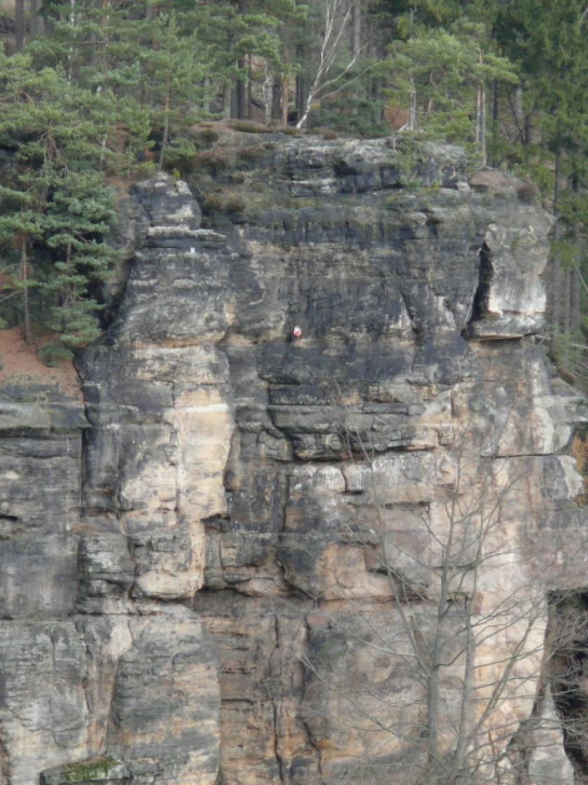 17. Na piču. Hledáme snad hodinu, hledáme už v několika dvojkách. Prej 200m tam. Hovno nikde nic, "Dejve serem na to jdem 16,15,50." "Ne!" "Ale jo. Když už jsme tady." "Tak tu nebudem do nekonečna." "Já jdu." "Já na to seru." Sváča. "Tak co máš." "Jo." "Super." Docházíme předchozí dvojku, trochu záviděj. Na 15 obětuju všechen morál a rychle na 50. Rovně přes převis slaňují neúspěšně. Dejv radí ať si to hodím bokem, a tak běhám po skále doleva doprava. "To trénuješ na Eiger?", prudí kámoš. Kontrolu mám, dolu. No kdybych věděl jaký sračky sou to nahoru, tak to radši prusíkuju.