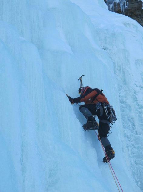 Nástupy na ledy jsou plné sněhu, postupuji radostně vpřed. Píťa jako zkušený lavinolog čas od času znejistí divným zapraskáním ve sněhu. I přes sebevětší opatrnost se jednou ve druhé délce projíždí malou lavinou (tentokrát jištěn spolulezcem).