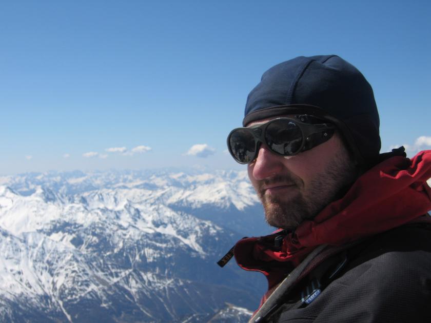 Balíme lana a volně dolézáme na vrchol (3798m). Asi půlhodinku se tu mrcasíme, fotíme, odpočíváme, pijeme čaj a doplňujeme cukry. Stále azuro a tak jsou perfektní výhledy. Ještě nás ale čeká sestup až na parkoviště F.J.H a tak vyrážíme.