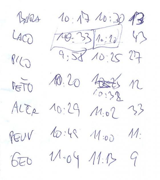 Jenže pak se rozcvičil Dejv a dostal se na 11 minut. Poslední startující Geo nakonec stlačil čas pod 10 minut, protože měl tak citlivý pípák, že vynechal asi dvě až tři kontroly a stejně se dostal k cíli za 9 minut.
