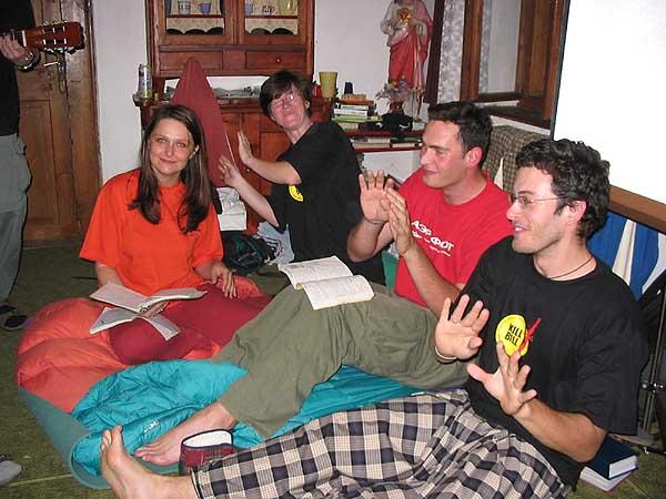 V pátek večer trvalo několik hodin, že se podařilo zprovoznit video. Do akce byl zapojen Pojídač, Oveček a Hanka T., taktéž videokamera, notebook, dataprojektor, videopřehrávač a spousta kabelů. K vidění byl Sýkův zábavný filmík o komínovém lezení v Ojvíně, Jitčino erotické angažmá jako břišní tanečnice a turecké filmy z divoké vody. V sobotu k nim přibyl ještě další Sýkův erotický film o devčatech na Mužském.