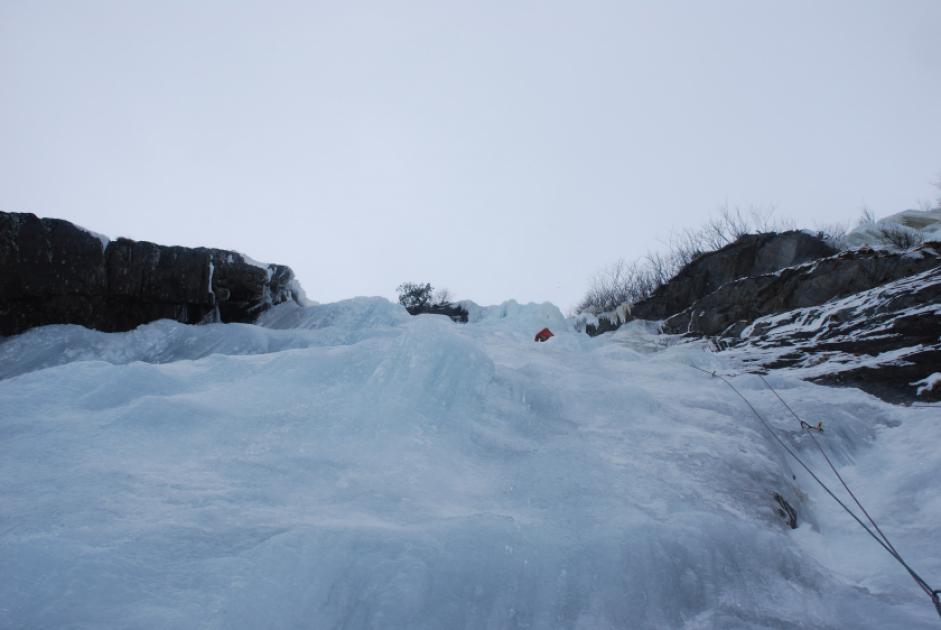 Co vám to budu dlouho popisovat. Bylo to parádní. Je pravdou, že předpověď počasí měla mírnou odchylku a bylo větší teplo, než jsme doufali. Úseky kvalitního ledu nám čas od času vystřídali úseky křehkého vysoce lámavého a špatně zajistitelného ledu, leč i přes tuto skutečnost, celou akci hodnotíme kladně. Doufám, že i Dejv nemyslel vážně, když stále mumlal "Co tady proboha v tom marastu dělám" a že vícekrát na ledy nevyrazí. Tímto se mu ještě jednou omlouvám, že jsem na něj celou dobu házel ledosračky. Maťa má pochvalu za pěknou rozlámanou délku, kterou Maťovi vytáhla - obětavé to děvče.