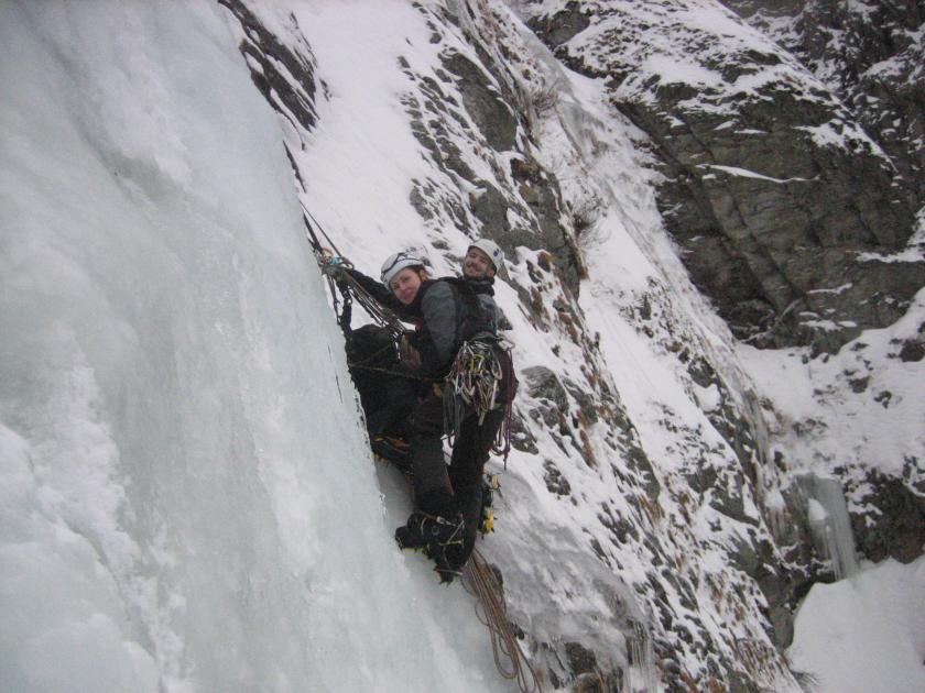 Co vám to budu dlouho popisovat. Bylo to parádní. Je pravdou, že předpověď počasí měla mírnou odchylku a bylo větší teplo, než jsme doufali. Úseky kvalitního ledu nám čas od času vystřídali úseky křehkého vysoce lámavého a špatně zajistitelného ledu, leč i přes tuto skutečnost, celou akci hodnotíme kladně. Doufám, že i Dejv nemyslel vážně, když stále mumlal "Co tady proboha v tom marastu dělám" a že vícekrát na ledy nevyrazí. Tímto se mu ještě jednou omlouvám, že jsem na něj celou dobu házel ledosračky. Maťa má pochvalu za pěknou rozlámanou délku, kterou Maťovi vytáhla - obětavé to děvče.