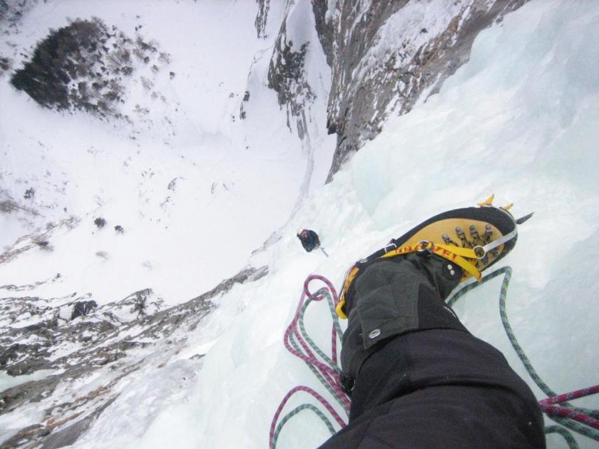 První den padl výběr na klasiku klasik Mordor. Kvalita ledu byla opravdu super a tak si užíváme každý metr. V Mordoru je celou dobu nádherná expozice. Nejvtipnější zážitek jsme si užili v závěrečné sněhové pasáži. Bahno se ve sněhu propadl do Bahna. Sestupy jsou zde místy zajímavé.