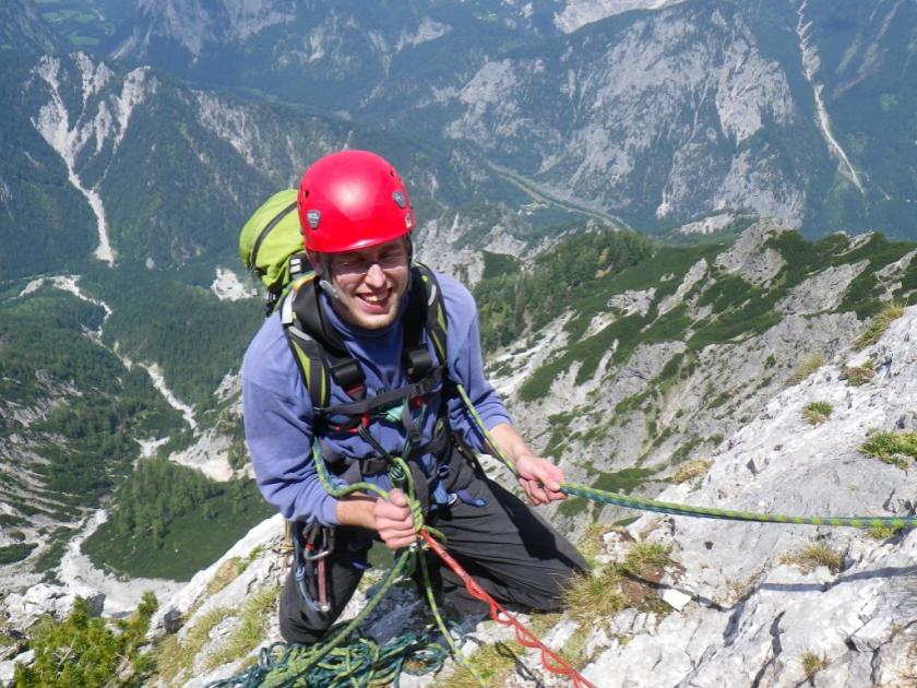 Sestup Kirchengratem nám zabere dalších pět hodin. Celá horní část je popolejzání 1-2. Pak následuje Schorfen (podívejte se na wikipedii co to je, ale určitě tím nechcete sestupovat), pak koryto potoka. Vyschlého, což teda potěší, když máte žízeň jak sviň. Nakonec hnusná Erdrinne, ale to už je vám všechno jedno, protože dole vidíte suť a les, která značí že to máte za sebou, a pod ní vám zbývá jen 400 v.m. lesní pěšinou. Až nakonec narazíte na na konci sestupu na potůček, který určitě neminete. A pak už je to jen pět minut na silnici.