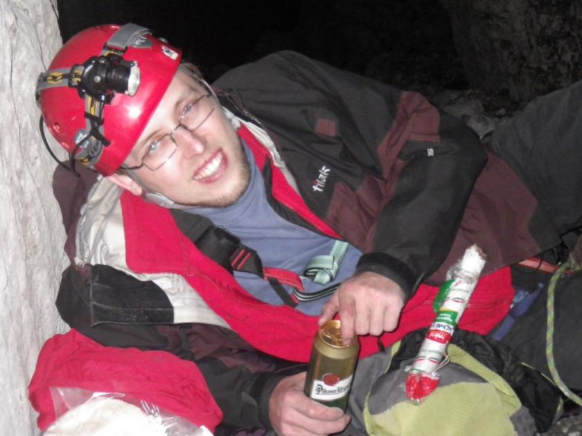 Tak, neplánovaný bivak, je vůbec vzdělání horolezce kompletní, dokud ho nezažije? V tomhle případě je bivak luxusní. Pěkně chráněni v tři metry širkém suťovém žlabu na vybagrovaných plošinkách to ujde, dokonce i na nějakou tu hodinku se podaří oko zamhouřit. V údolí se válí inverze, a tak nám není ani velká zima. Jen ta voda trochu chybí.