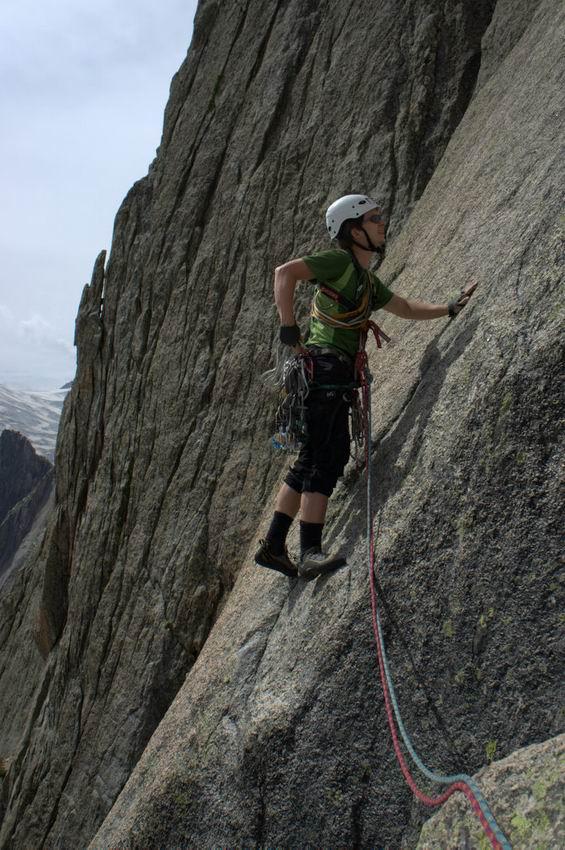 Vyrážíme ve čtyři, za tmy překonáváme odtrhovku a než se rozední, máme první dvě délky (4c a 6a) za sebou. Odsýpá nám to, ani mě nijak nerozhodí, když mi nečekaně sklouzne noha v sokolíku a já se zhoupnu ve frendu... Dolézáme do 10. délky, kde se bude lámat chleba. Maťo se tehdy strašně vypsychoval, a pak už jsme na střídačku psychovali každou délku až do sedmnácté, kde jsme to druhý den otočili.