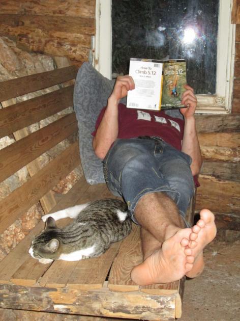 Kemp Climbers garden, ve kterém spíme, je docela malebné místečko, s mírným nádechem alternativního životního stylu. Osazenstvo tvoří samí milí lidé, kteří ovšem sdílí dvě zvláštní vlastnosti: Zaprvé chodí spát v devět večer a místo večerního halekání po kempu většinou před spaním jen tiše sledují lezecké filmečky na notebooku (v kempu je wifi). Zadruhé po nás bez zjevného důvodu divně koukají, což po několika dnech přemítání přisoudíme tomu, že mluvíme špatně anglicky (oni jsou skoro všichni rodilí mluvčí) a debatujeme mezi sebou východním jazykem evokujícím v nich vzpomínky na studenou válku. No a možná taky občas trochu halekáme po kempu, i když ja jsem názoru, že oproti mým jiným dovoleným jsme je šetřili, jak jsme mohli.