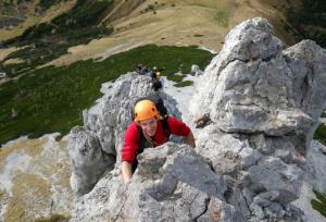 Lezli jsme těsně pod 2000 metrů nad mořem, počasí bylo dva dni ideální a nadšení jsme byli hlavně z hřebene Fledermausgrat na Griesmauer uzavírajíc údolí nad Leobenem. Jedenáct délek byl těžký od dvojky do čtyřky a sestup byl pěšky po suti.
