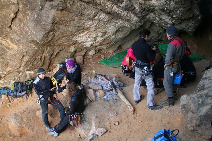 Sakal zmizel, jen co jsme se všichni dostali do jeskyně. Lokomotiva Beroun slanila hned po nich. My slanili už za tmy. Po nás se do jeskyně propasírovali skrz plazivku jeskynáři z Geospeleos.