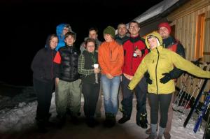 Cesta na chatu připomíná pochod na Terynu. Vlastně je to ještě horší. Hned za první zatáčkou se objeví chata trčcí nad pořádným hangem, který je samozřejmě až na konci údolí. K dolní stanici nákladní lanovky je to v pohodě, pak se to trochu zvedne, a posledních 200 výškových metrů je peklo jako vždy. Tentokrát se však stalo něco neuvěřitelného, a první z nás dorázili na chatu aniž by zatměli. Postupně pak ještě sesbíráme opozdilce z hangu, a nečekaně brzo jsme všichni ve Winterraumu.