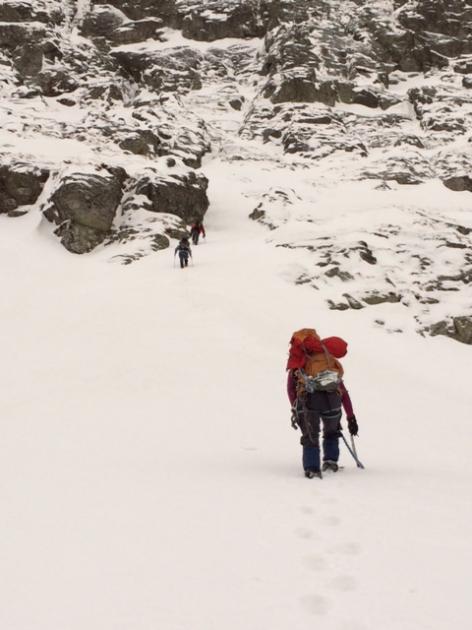 Pak jsme lezli jakejsi kotel, ale pro mě je všechno kotel, páč jsem tak trochu sračka. Nic, jdu mrznout pod štand. Lezem. Klíčový místo. Tam musíš dát ty cepíny takhle, navalit se na první, zandat zboku druhej, navalit se na něj, vyndat první, vyměnit ruce, zaseknout vysoko, chytnout a ... jo počkej, ty nemůžeš, bys je zlomil. Tak to prostě nějak přelezeš. Tak jsem to přelez. Táááková to bylo úleva.