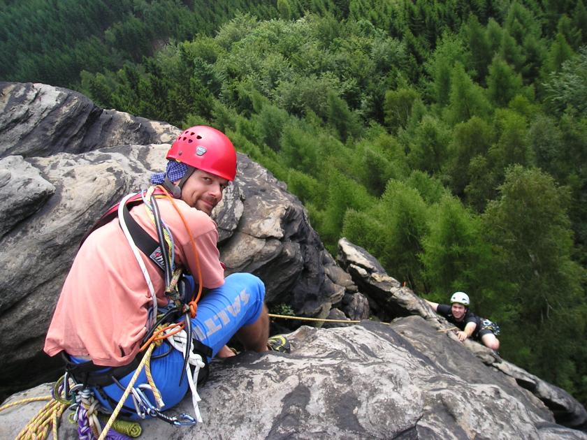 Einsame Nadel - pěkná věž na rozcvičení. Vedou tam dvě šestky, tak proč neudělat téhle osamělé jehle společnost a rovnou nevylézt na vrchol ve čtyřech.