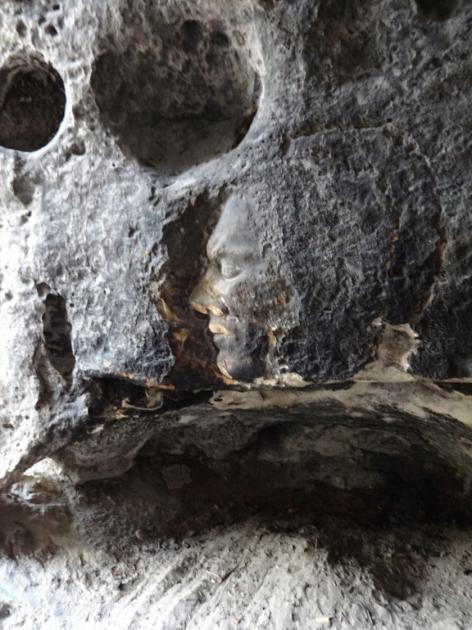 První zastávkou je věž poblíž Janovy vyhlídky, kde chci omrknout další Joskovu jeskyni; má to být ta, ze které skákal, když prchal před gestapem. Věž je ale rozložitá a jeskyně tu najdeme asi tři, takže si nejsme úplně jistí, která je ta pravá. Víťovi se mezitím zalíbí vysoká Údolní stěna (VI) s jedním kruhem, tak jdeme do ní. Cesta je dlouhá a až na křehčí části docela hezká a stojí za to minimálně kvůli výlezu na hranu "kulisy", kde se najednou ocitáte ve fantastické expozici. Při cvakání kruhu se Víťa ukáže být mistrem improvizace, když uprostřed stěny sestrojí šáhlo z expresky, šťáradla a koruny, Přemek Podlaha by měl radost. Další nová věž! Z vrcholovky zjišťujeme, že jsme tu letos teprve třetí, a to byla cesta ve Skalním muži a vedou sem hned dvě jedničky. Nahoře taky identifikujeme pravou jeskyni i s důvodem, proč jsem se sem sama bála. Naštěstí není doma, takže si ji shora pěkně v klidu prohlédneme. Je opravdu obrovská, z nepřístupné údolní strany otevřená, z druhé sem ústí jen úzké skalní okno. A ta hloubka dolů je tedy sakramentská.