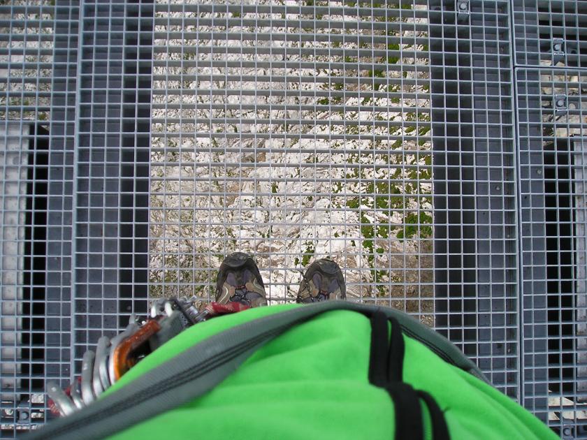"Horolezci! Věnujte pozornost tomuto hlášení. Hovoří k vám prezident alpského úřadu pro plánování transevropské dopravy. Jak nepochybně víte, plány pro rozvoj okrajových oblastí Alp vyžadují vybudování nové expresní dálnice, která má vést vaším oblíbeným pohořím. Vaše lezecká oblast je bohužel jedna z těch, které jsou určené k demolici. Celá akce bude trvat necelé dvě minuty. Děkuji vám."