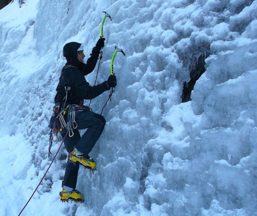 Letos se lezení po ledopádech konečně povedlo. Mráz mrznul, voda tuhla, cepíny se brousily a mačky utáhly.