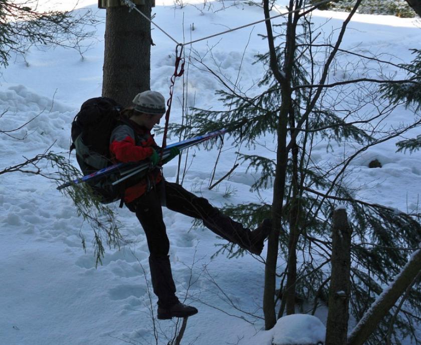 Kdo se zranil: Gobovi kus ledu rozbil nos, až tekla krev. Viktorka si natloukla záda, když iniciativně s chutí skočila do svahu na simulaci ledovcové trhliny.