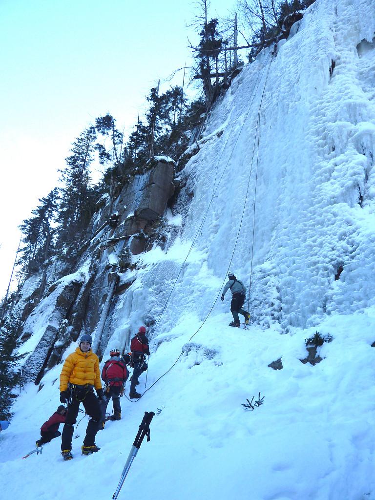 Letos se lezení po ledopádech konečně povedlo. Mráz mrznul, voda tuhla, cepíny se brousily a mačky utáhly.