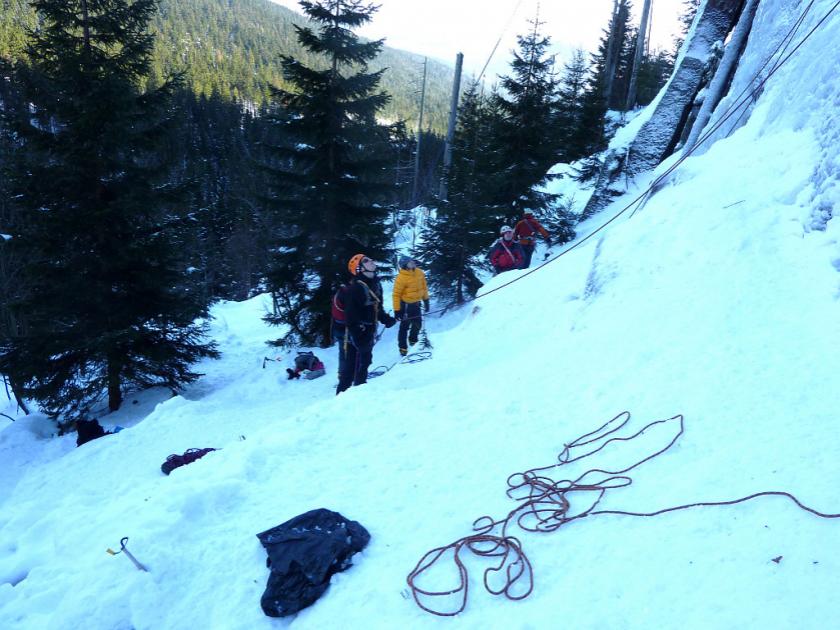 Letos se lezení po ledopádech konečně povedlo. Mráz mrznul, voda tuhla, cepíny se brousily a mačky utáhly.
