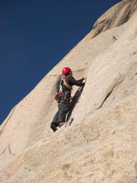 No a čo sme nevyliezli? Nakoniec viac ako vyliezli. Hneď prvý deň ráno prší ale prestáva, tak o 11h nastupujeme do pôvodnej varianty Les point des sourpis a prekvapivo zisťujeme, že to nestíhame. Po tretej dĺžke zlaňujeme dole. Na druhý sme to ale doliezli, viď vyššie. Pod asi najľahšiu z často lezených ciest v okolí - Magie d'Orient sme sa nedostali. Odradil nás rozpraskaný ľadovec. No a posledný deň pytlíme krásnu Amazoniu. Tvrdá klasifikácia, dlhšie odlezy, únava, psychická či fyzická spôsobili, že zo 6-tej dĺžky zlaňujeme dole. Ale kvôli mokrej platni a jemnému sokolíčkovi v prvej dĺžke, "smíchovskej" špáre s len dvomi použitelnými friendami v tretej dĺžke, prísnej 5c dĺžke s vklínencami po metri a ďalšími krásnymi dĺžkami sa tam určite vrátime a odpytlíme...