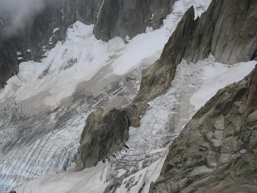 Druhý týden je z celých Alp relativně nejoptimističtější předpověď na Chamonix. V okolí chaty Envers de Aiguilles to už známe a máme tam ještě dost hezkých cest. Pilo na štandech zpívá Nohavicovo Jdou po mě, jdou a tak postupně ještě i cestou zpátky v autě vzniká další hit.
