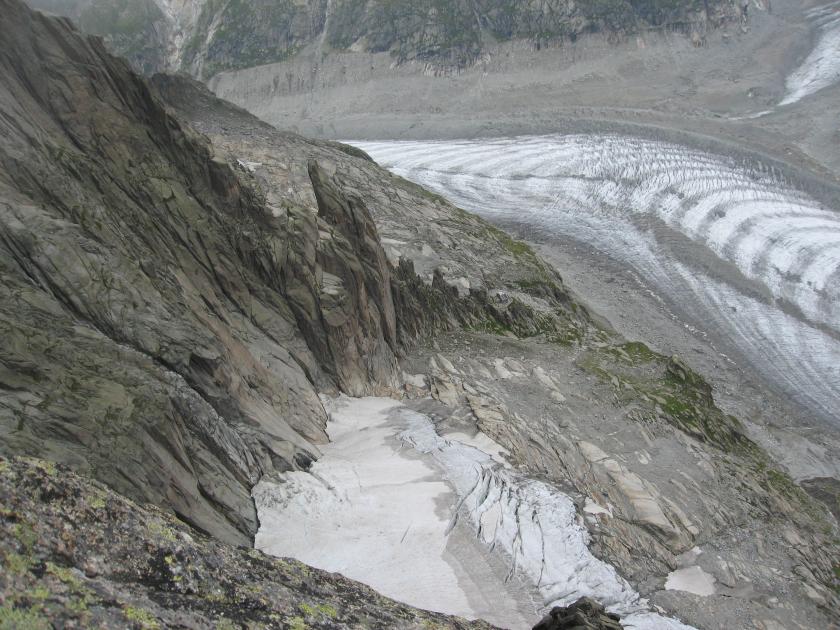 Chamonix. Asi tretinu času nám pršalo, sneh bol od 3300m, takže naše sny vo vyšších polohách sa nedali uskutočniť, ale ešte stále máme nejaké sny aj "dole" na chate Envers. Viacero dĺžok bolo mokrých, aj niektoré ťahšie, ale vždy to nejako šlo. Ľadovec ubúda, až na 15m úsek sa dá pod Nantillony dostať "suchou" nohou. Niekto vraj vypočítal, že pri chate Envers už v roku 2025 ľadovec nebude.