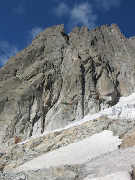 No a čo sme nevyliezli? Nakoniec viac ako vyliezli. Hneď prvý deň ráno prší ale prestáva, tak o 11h nastupujeme do pôvodnej varianty Les point des sourpis a prekvapivo zisťujeme, že to nestíhame. Po tretej dĺžke zlaňujeme dole. Na druhý sme to ale doliezli, viď vyššie. Pod asi najľahšiu z často lezených ciest v okolí - Magie d'Orient sme sa nedostali. Odradil nás rozpraskaný ľadovec. No a posledný deň pytlíme krásnu Amazoniu. Tvrdá klasifikácia, dlhšie odlezy, únava, psychická či fyzická spôsobili, že zo 6-tej dĺžky zlaňujeme dole. Ale kvôli mokrej platni a jemnému sokolíčkovi v prvej dĺžke, "smíchovskej" špáre s len dvomi použitelnými friendami v tretej dĺžke, prísnej 5c dĺžke s vklínencami po metri a ďalšími krásnymi dĺžkami sa tam určite vrátime a odpytlíme...