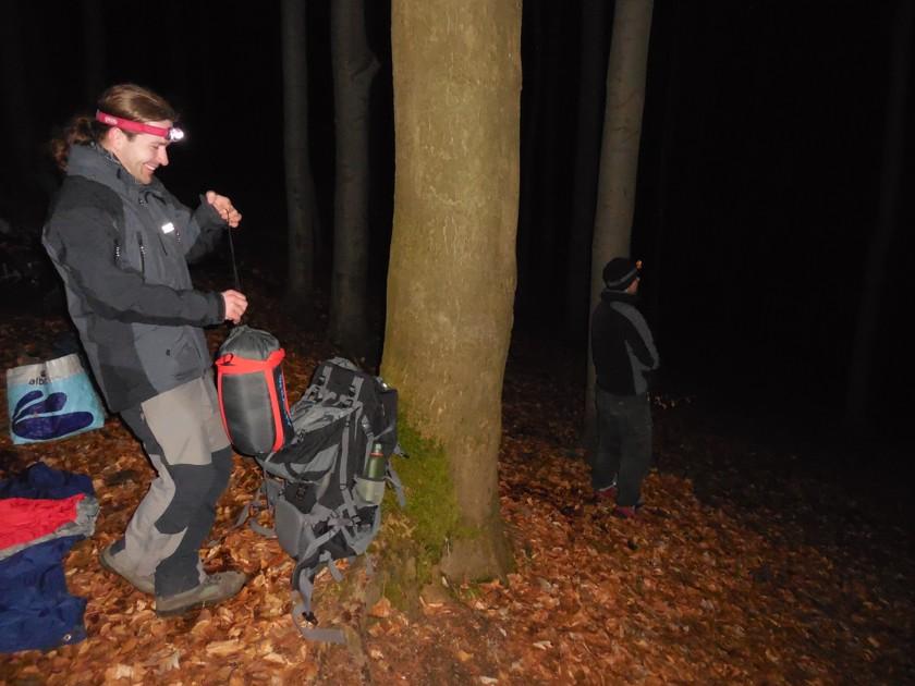 Bereme věci na spaní a mizíme v lese. Někteří nováčci se, i přes moje varování, že jim bivak budoucí metodik neuzná, pokušejí postavit čínskou napodobeninu stanu. Nakonec se jim to ale nepodaří a jako všichni spí ve ždáráku. Noc je jasná, pozoruji hvězdy a myslím na Pilovu teorii. K ránu nás budí jemný déšt, ale my se nedáme a pouze zastčíme hlavy více pod plachty a spíme dál.