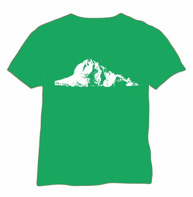 Námět na přední část trika vznikl z fotografie, která zachycuje pohled na Bořeň od severozápadu, tzv. sileuta ležícího lva. Na zádech bude nápis Bořeň - Climb now, work later.
