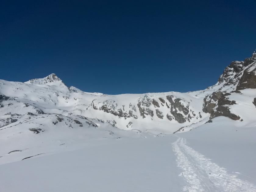 Od Martin Busch Huette už je to pak pohodlně úbočím, dlouhým úbočím, lavinézním úbočím až nad dětský kopeček ve Ventu. Tímto taky vypadává další chata ze Silvestrovských možností.