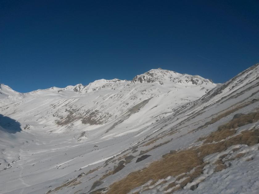 Od Martin Busch Huette už je to pak pohodlně úbočím, dlouhým úbočím, lavinézním úbočím až nad dětský kopeček ve Ventu. Tímto taky vypadává další chata ze Silvestrovských možností.