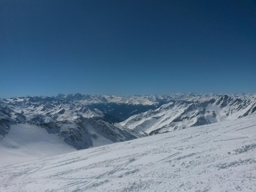 Od Martin Busch Huette už je to pak pohodlně úbočím, dlouhým úbočím, lavinézním úbočím až nad dětský kopeček ve Ventu. Tímto taky vypadává další chata ze Silvestrovských možností.