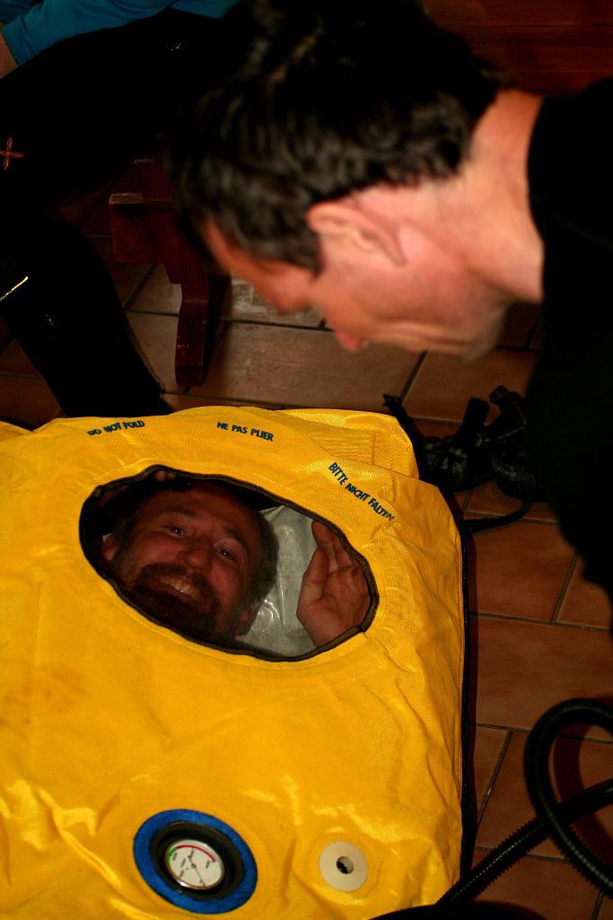 Gobo v hyperbarické komoře 1200 metrů pod mořem.