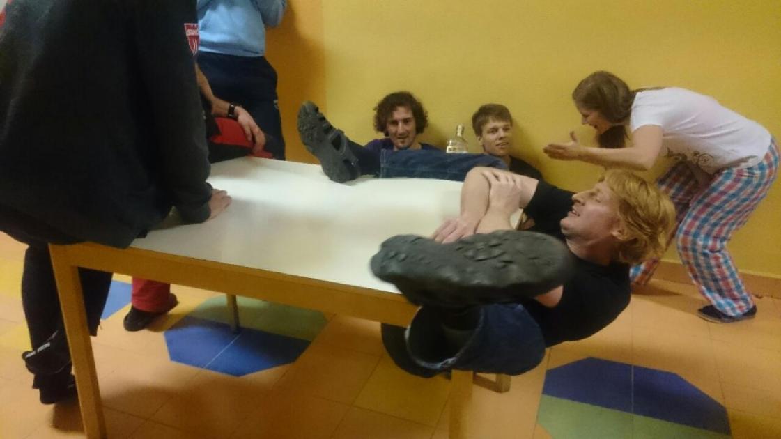 Odtud již přibíháme ke kontrole zakreslené na historické mapě. Míjíme Robina s Jančou, jak se vrací cvaknout kontrolu na skále. Jen zapsání do vrcholovky nestačí. Dalším zpestřením je přelanění rybníka, naštěstí bez koupání. Z lezeckých disciplín už chybí jen cvaknout kontrolu na slackline, přelézt klettersteig v koruně dubu a vyšplhat nebo vyprusíkovat po konopném laně. Na několik stromů jde dolézt bez lana.