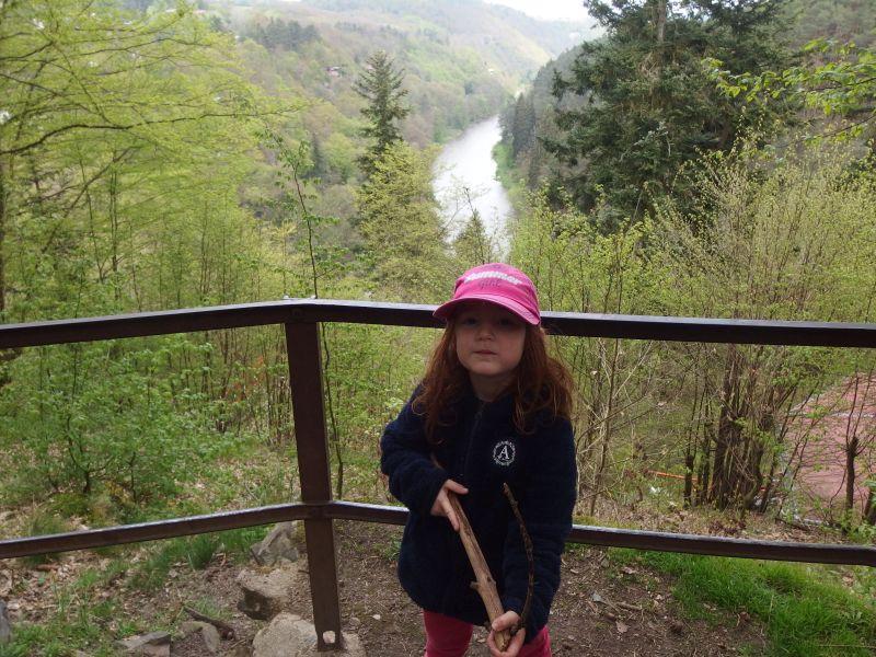 Z kopce jsme po schodech klesly na úroveň Sázavy a cestou narazily na jednu zapomenutou neupálenou čarodějnici, která zde hlídkovala. Pak dolehla na Dominičku únava, proto jsme častěji zastavovaly a kochaly se Sázavou. Najednou se na cestičce objevila další známá tvář Bára Šimanovská s rodinkou.