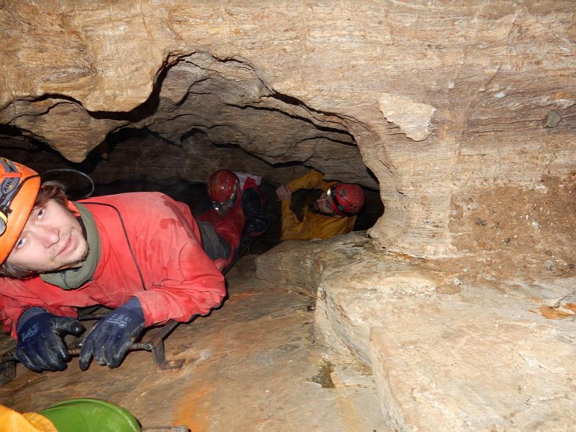 Radim a Hanka vylézají z jeskyně.