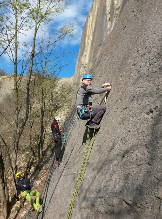 V neděli se Kuba s Davidem nechali zachraňovat skoro naostro na třídélkové Dušičkové stěně. Všichni si vyzkoušeli, jak je těžké a náročné na materiál i lidi, ale ne nemožné, zachránit zraněného nešťastníka z velké členité stěny.
