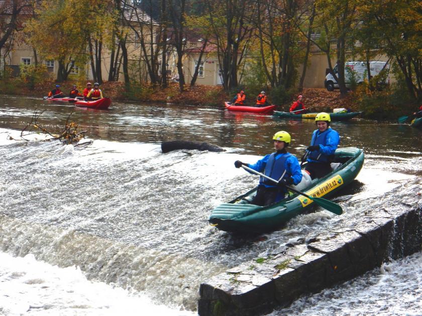Nakonec jsme se letos sešli dva kajaky, jedna kanoe a dvě koloběžky. Avizovanou Markétu na kanoi jsme nezahlédli.