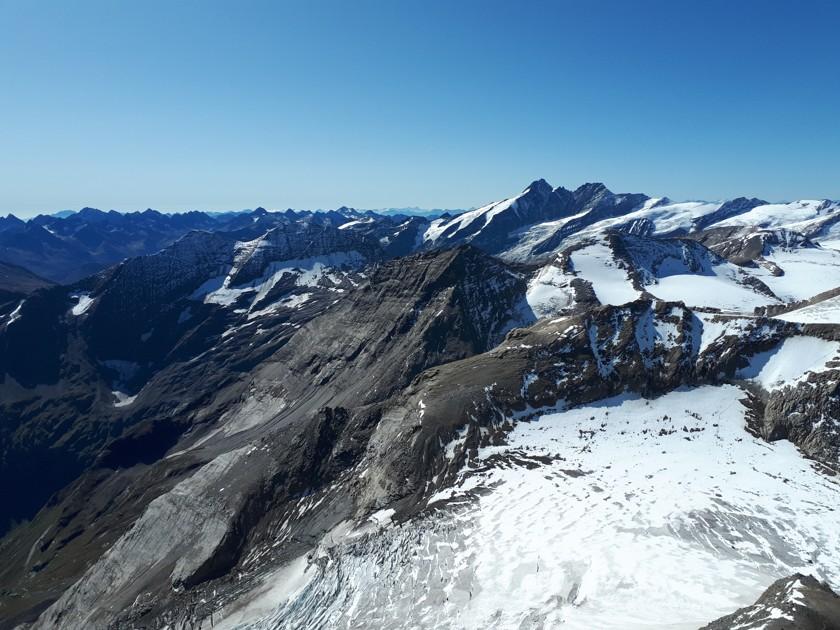 Od Kesselfal Alpenhaus (1034 m n.m.) jsme jeli autobusem, který nás vysadil u horní přehrady Stausee Mooserboden (cca 2000 m n.m). Odtud jsme vykročili k chatě Heinrich-Schwaiger-Haus (2802 m n.m.) a pokračovali na vrchol. Sněhu minimum, takže ani nevadilo, že mačky a cepíny jsme nechali dole. Pro efekt alespoň někteří z nás nasadili helmy. Vrcholu 3564 m n.m. jsme dosáhli kolem 11 hodiny. Počasí bylo parádní, takže nebylo kam spěchat a vrcholový oběd jsme si náležitě vychutnali. Nadšení lovci kešek Evka se Zeťákem si ho navíc zpestřili převracením všech kamenů na východ od vrcholového kříže, což vyvolalo spoustu pobavených a udivených pohledů ostatních přítomných horolezců. Cesta dolů šla rychle, akorát Filipa už před nástupem do autobusu dohnal spánkový dluh a byl rád, že se svezl (naštěstí ne během jízdy na zem).