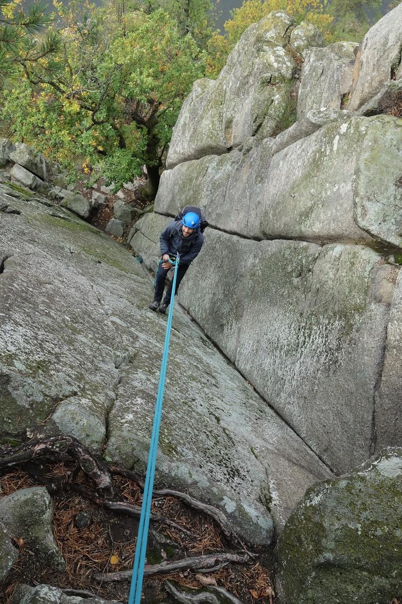 První víkend v říjnu diktovalo naše lezecké ambice především deštivé počasí. Sobota propršela skoro celá, ale v neděli měl déšť ustávat, a tak se Filip s Radkou už v sobotu večer přiblížili k tajemstvím opředené oblasti - Jickovice. Zde se leze převážně po vlastním.