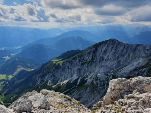 Ve čtvrtek ráno nám počasí opravdu přálo, slunce jako z pohlednice a nebe bez mráčku. Cesta k nástupům byla tak akorát, zhruba 400 výškových metrů. A tak jsme se do hodinky už vázali na lana a nastupovali do cest. Celá naše skupina se přiměřeně rozprostřela po celé jihozápadně stěně Kalblingu (2 196 mnm) a začali jsme stoupat k vrcholu. Cesty byly krásné, v těžších úsecích odjištěné a celkově byli všichni s prvním lezeckým dnem spokojení. Odpoledne jsme si mohli vychutnat krásný výhled z vrcholu kopce, až do Národního parku Gesäuse. Večer se opět nesl v duchu společného veselí.
