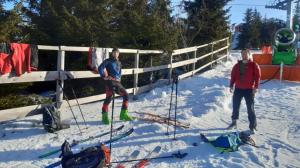 Ráno probuzení do azura, vychází oskar, peče přímo do nás. Rychlé jídlo, sjet do mlíka, ski nasadit a vyběhnout aspoň dvakrát nahoru. To se podařilo jen Erikovi. Já se Zeťákem se v klidu ploužíme, i když čas nahoru nakonec není nejhorší. Nejdřív pláň z Hromovky, šílená cesta, kterou znám za ty roky zpaměti, potom sjezd do Svaťáku, opět výšlap nahoru a sjezd na Hromovku. Další kilák vejšky k dobru.