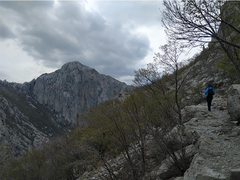 Sestup jsme trochu hledali, lomozili se křovím a trnitými stromky. Nakonec s pomocí mapy.cz (nuda...) vytušili, kam se máme prodírat, abychom trefili sestupové sedlo. Většinu dvouhodinové cesty dolů jsme měli při měsíci, jako za starejch časů... A z původního pocitu, že už v Paklenici nemám moc co lézt, zůstal spíš dojem, že mi tu ještě leckterá cesta dokáže natrhnout p..el. Nechcete taky vyrazit? Doporučil bych vám jedno 4 céčko...