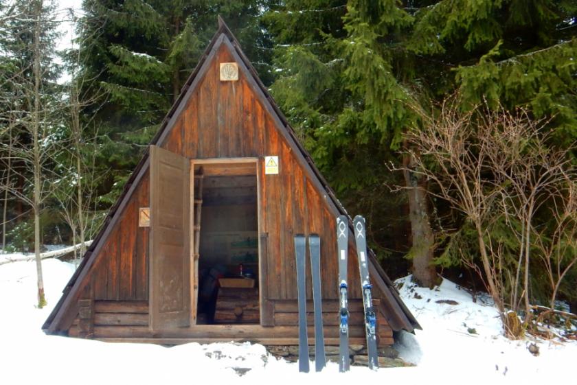 Vidíme do Polska. Bouda postavená rovnou na hranicích nás láká k přespání, ale je teprve odpoledne. Signál k odchodu po lehce zasněžených loukách nám dodají tři běžkaři, kteří se objevili na obzoru. Když projeli oni, projedeme také. Kromě tří pěších turistů dnes nepotkáme nikoho jiného.
