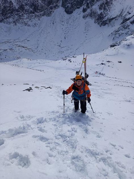 Tomáš K. proběhl mnoho sedel a vrcholů v Červené dolince včetně několika pokusů o Jahňací štít. Nejtěžší směr sjel šikmým žlabem ze Západní Kozí štrbiny k Žltému plesu 40° na sever.