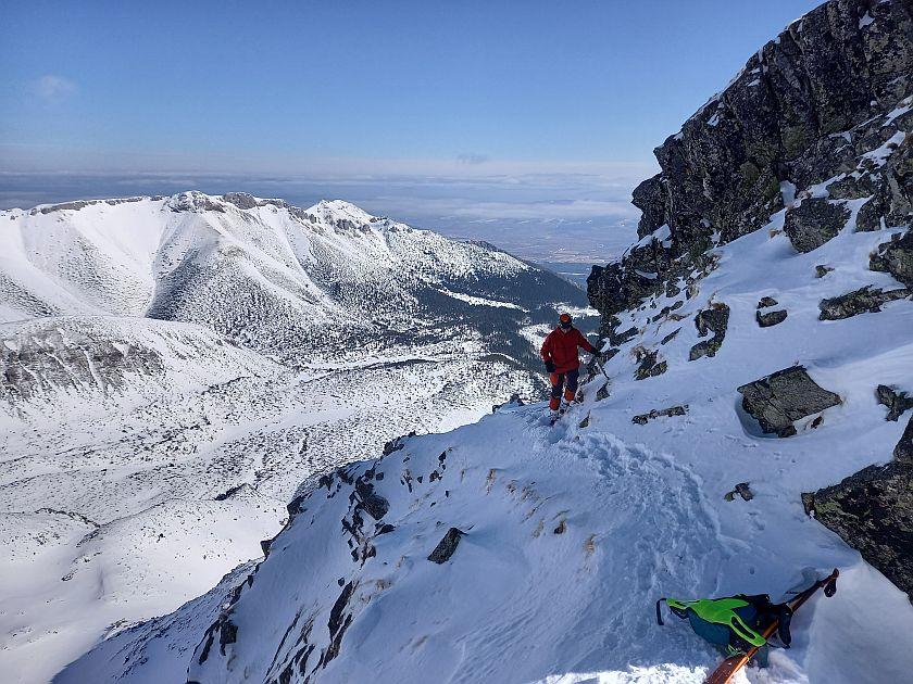 Tomáš K. proběhl mnoho sedel a vrcholů v Červené dolince včetně několika pokusů o Jahňací štít. Nejtěžší směr sjel šikmým žlabem ze Západní Kozí štrbiny k Žltému plesu 40° na sever.