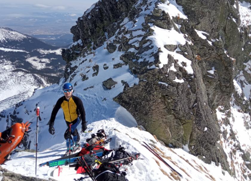 Tomáš K. proběhl mnoho sedel a vrcholů v Červené dolince včetně několika pokusů o Jahňací štít. Nejtěžší směr sjel šikmým žlabem ze Západní Kozí štrbiny k Žltému plesu 40° na sever.