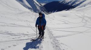 Sjezd byl opět něco výjimečného. Jarní firn, který tahá za lyže se střídá s nekonečným množstvím prašanu, takže i hodit tlamu je zábava.