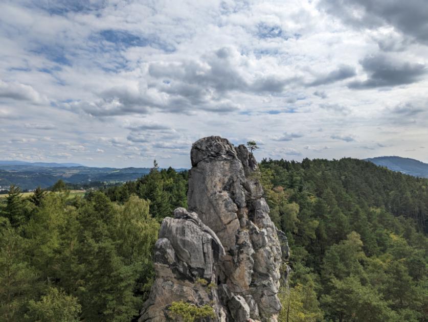 Tom nám vytáhl dvě hezké cesty na jižních stěnách hlavní věže - https://www.horosvaz.cz/skaly-skala-1124/
